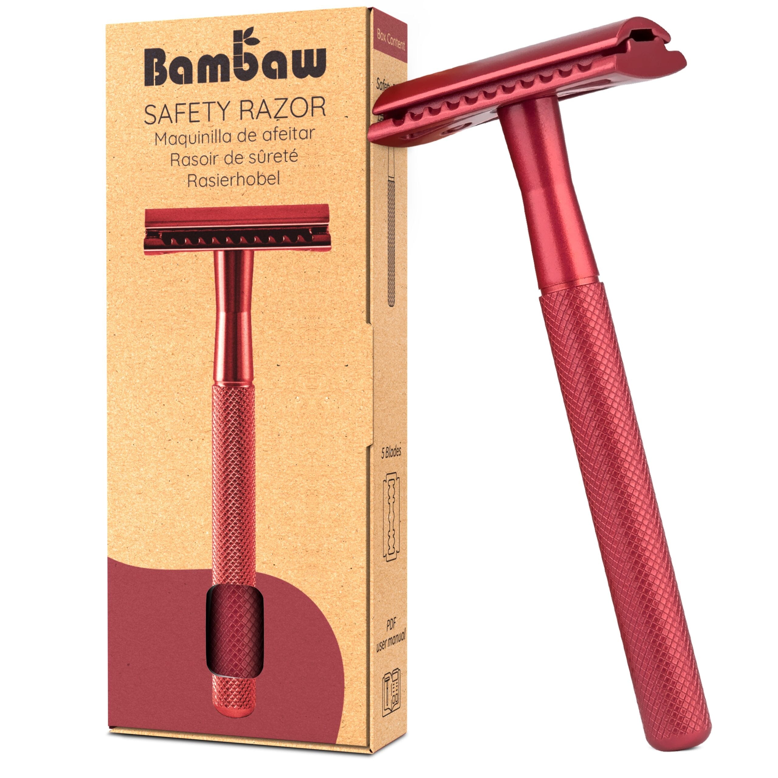 Bambaw Safety Razor barberhøvel - Rød