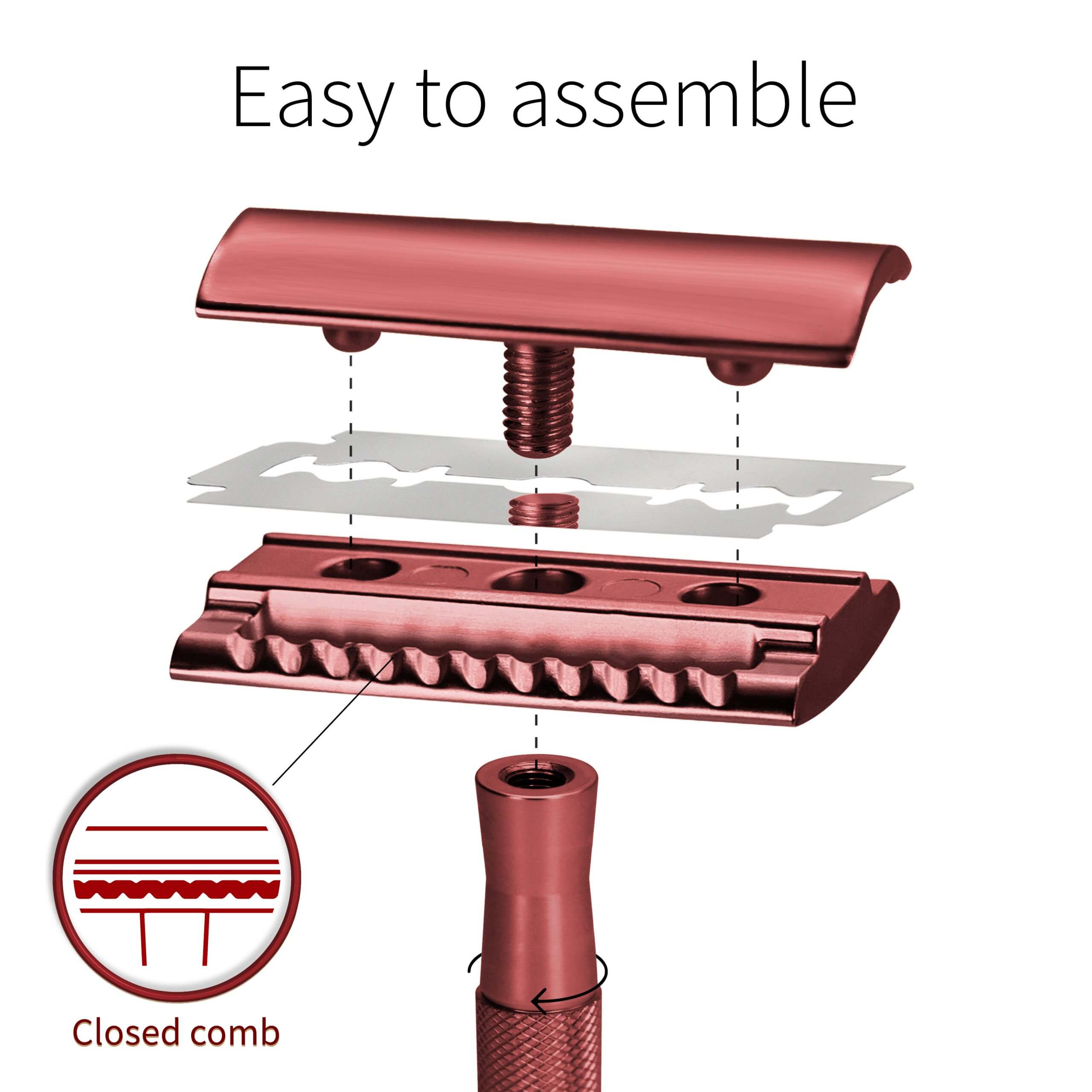 En safety razor består af 4 dele.