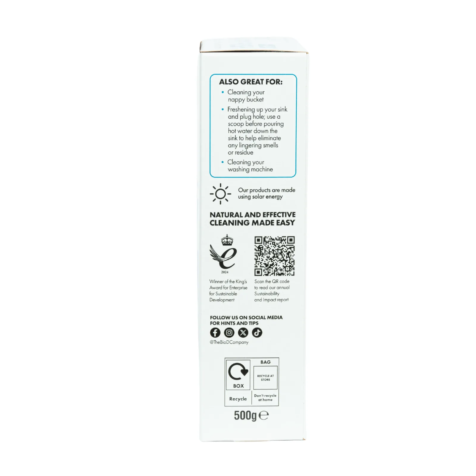 • Anbefales å bruke 1 spiseskje sammen med ditt vanlige vaskemiddel (f.eks. Ecoegg, BIO-D flytende vaskemiddel eller BIO-D vaskepulver)