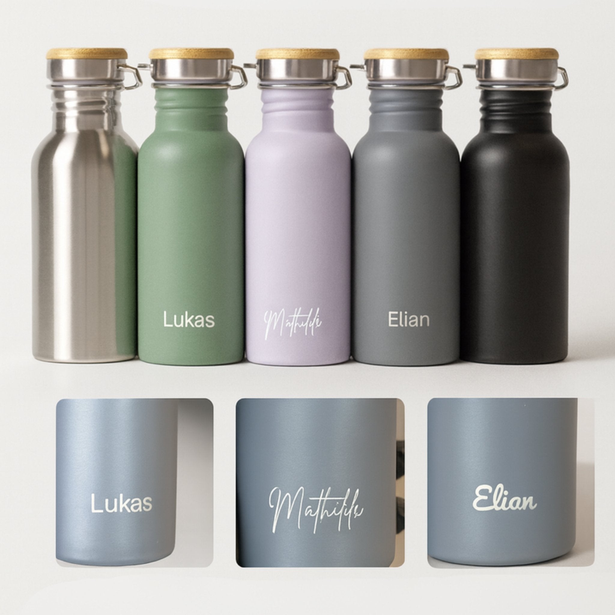 Flaskens pulverlakkerte overflate gir en jevn, holdbar finish som både ser bra ut og er mer miljøvennlig enn tradisjonell maling. Bambuslokket setter prikken over i-en og gir flasken et naturlig og tidløst uttrykk.