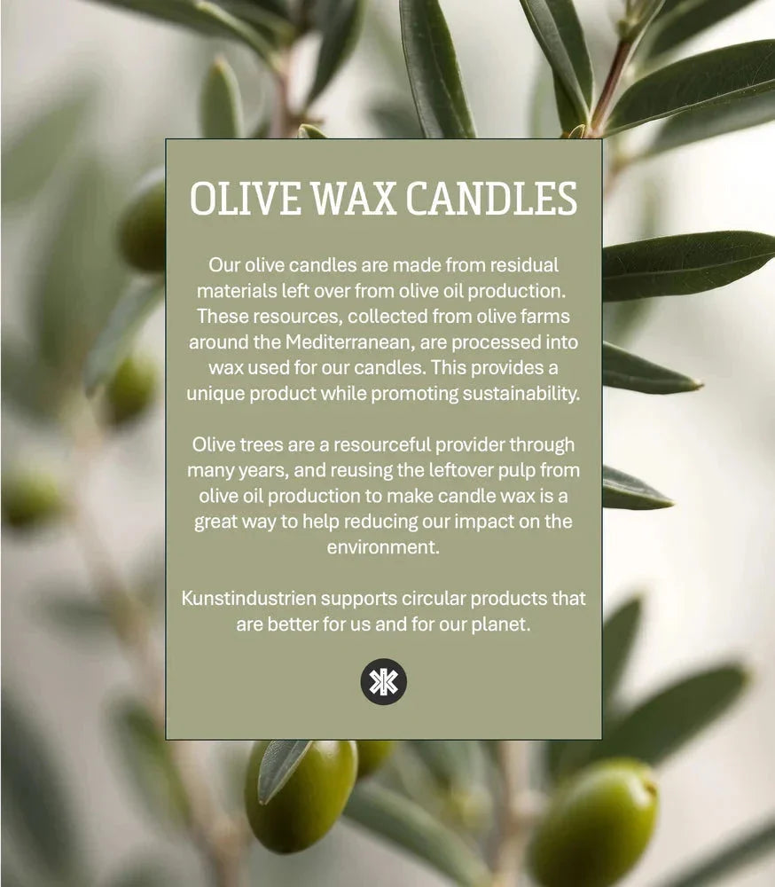 Kalenderlysene fra Kunstindustrien er mer enn bare vakre julelys – de er også et miljøvennlig og vegansk alternativ til tradisjonelle stearinlys. Hvert lys er laget av 100 % upcyclet oljevoks, utvunnet fra restmaterialer etter produksjon av olivenolje fra Middelhavsregionen. Denne sirkulære produksjonsmetoden reduserer avfall og bidrar til en mer bærekraftig jul.
