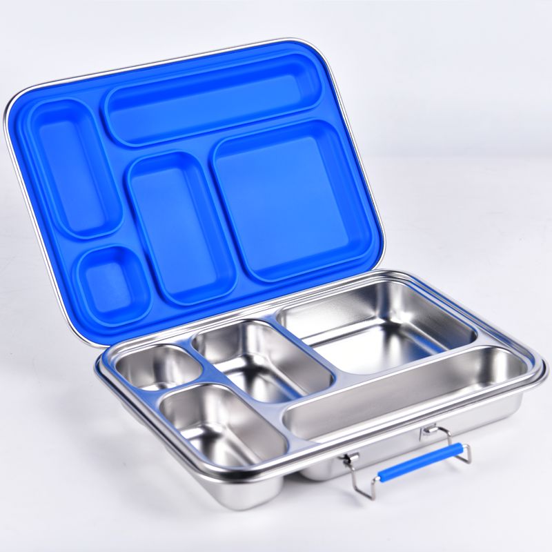 Suztain Matboks i Stål med 5 Rom – Rosa, Grønn, Blå & Hvit