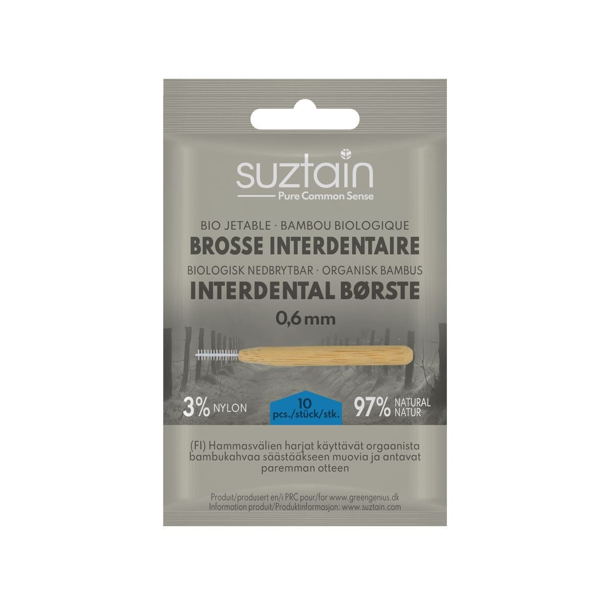 Suztain mellomromsbørster er det perfekte valget for daglig rengjøring av mellomrommene mellom tennene. Med en størrelse på 0,6 mm er de ideelle for å komme til der vanlige tannbørster ikke rekker, og gir en mer effektiv rengjøring enn tanntråd. Mellomromsbørstene er laget av bærekraftig Mosu-bambus, som er kjent for sin naturlige styrke og antibakterielle egenskaper. Bambusen høstes ansvarlig, og produktet er naturligvis BPA-fritt.