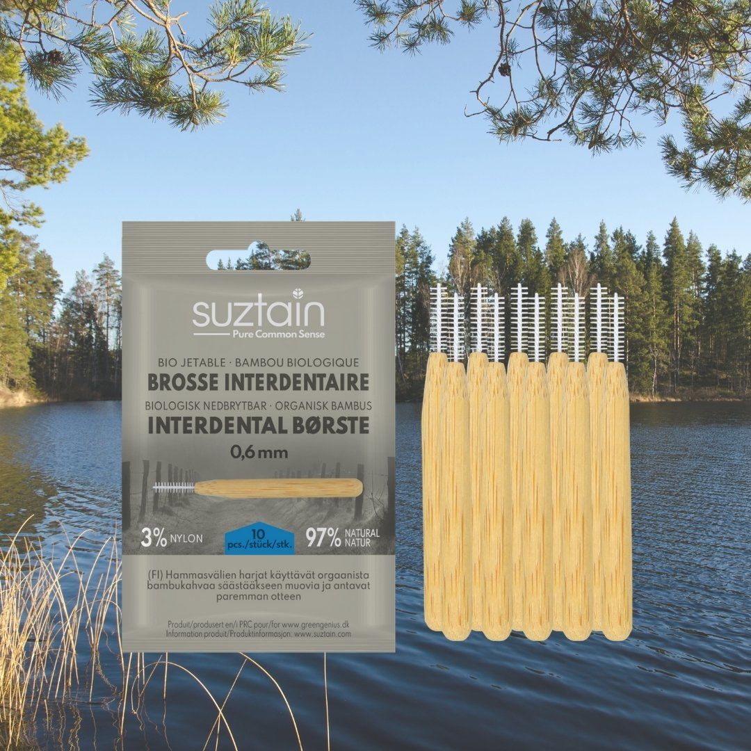 Suztain mellemrumstandbørster gør det let og bæredygtigt at rense tandkødet. Mellemrumstandbørster kaldes også ofte for interdentalbørster.