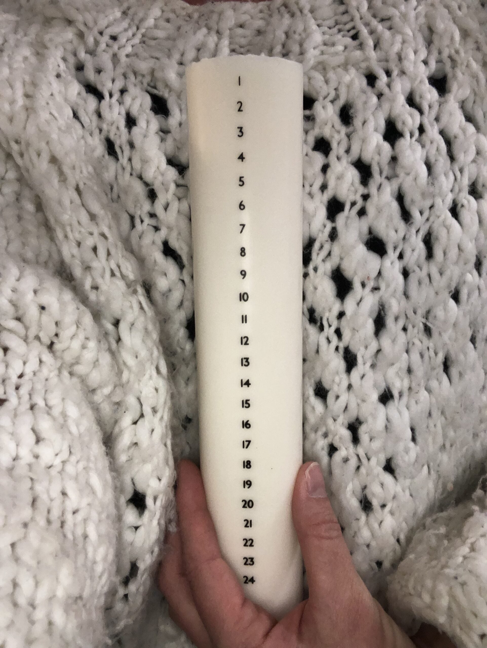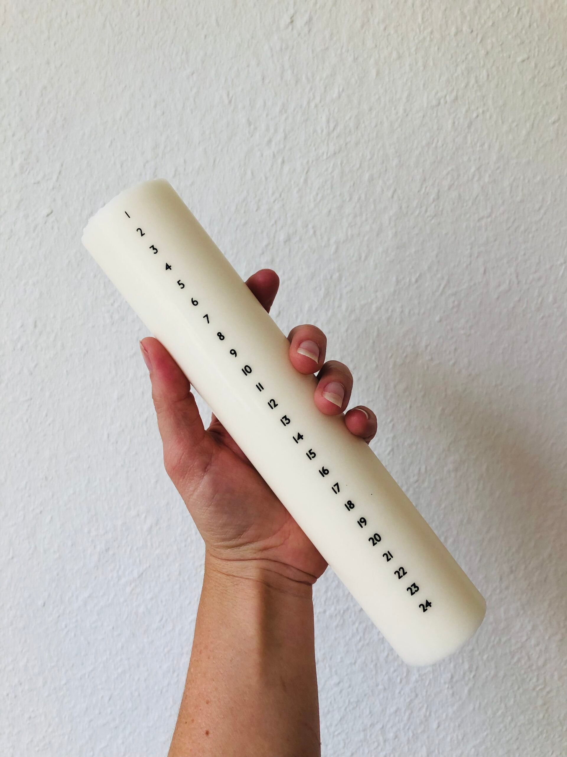Åbenlys Kalenderlys med sorte tall er et naturlig og stilrent adventslys laget av soyavoks og stearin. Nyt 60 timers ren hygge helt uten parfyme eller unødvendig kjemi.