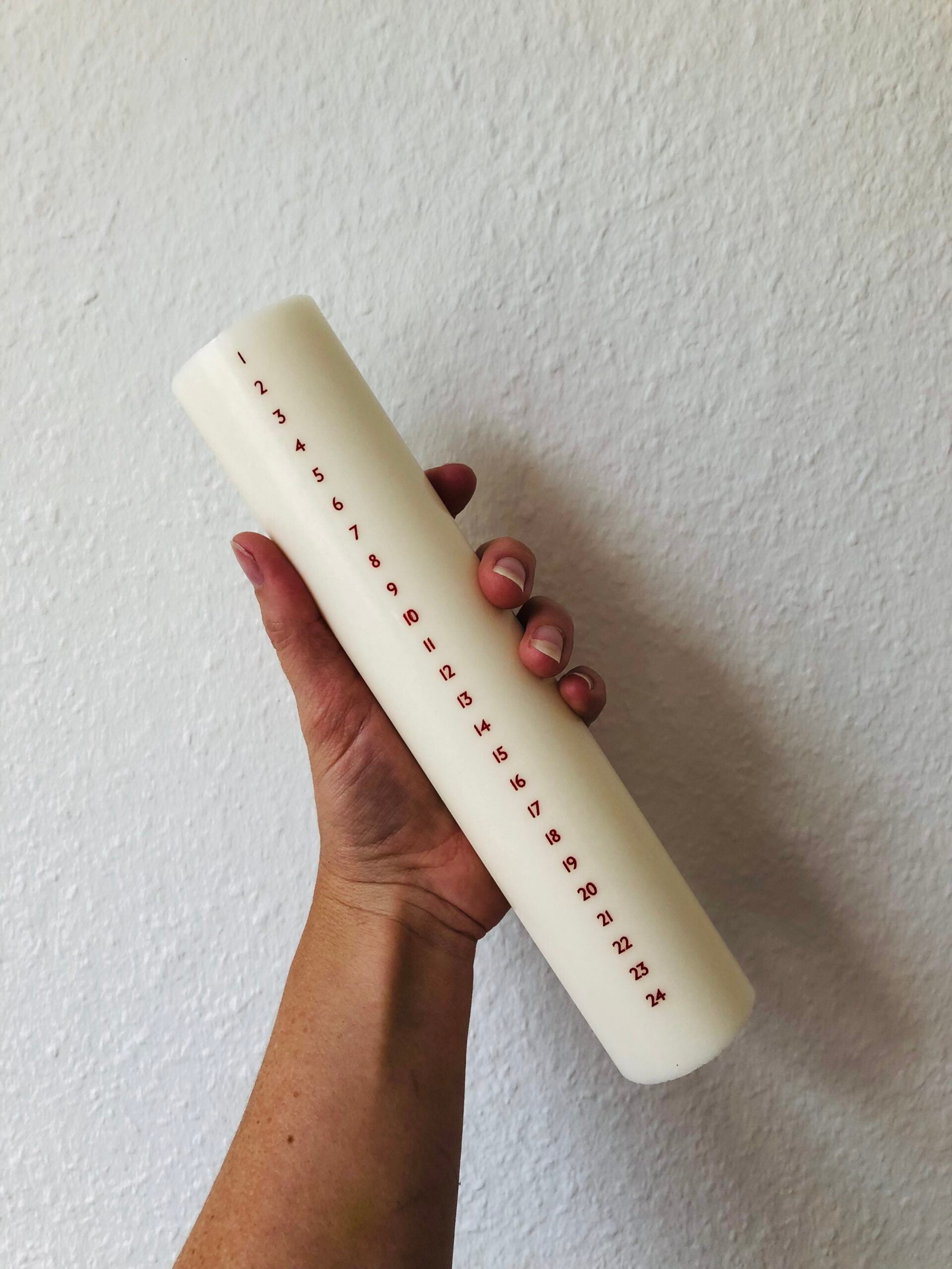 Åbenlys Kalenderlys med røde tall er et stemningsfullt adventslys laget av naturlige råvarer – uten parfyme eller unødvendige kjemikalier. Nyt trygg og ansvarlig hygge hele desember.