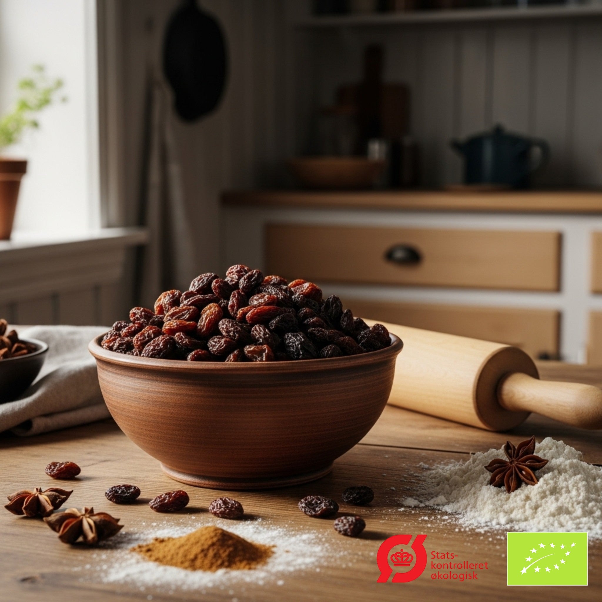- Type: Økologiske rosiner (DK-ØKO-100, ikke-EU jordbruk)