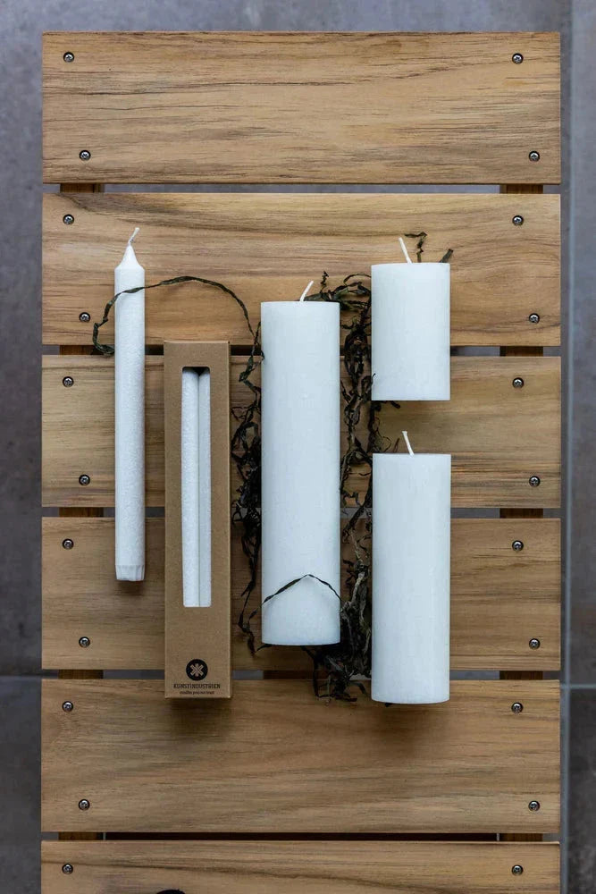 Håndlaget kubbelys i 100 % upcyclet olivenvoks – vegansk og miljøvennlig. Det krystallinske mønsteret gir et vakkert uttrykk, og lyset brenner lenge og jevnt.