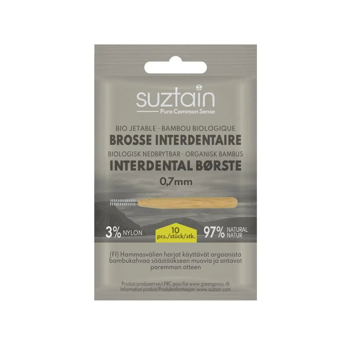 Suztain mellomromsbørster er det perfekte valget for daglig rengjøring av mellomrommene mellom tennene. Med en størrelse på 0,7 mm er de ideelle for å komme til der vanlige tannbørster ikke rekker, og gir en mer effektiv rengjøring enn tanntråd. Mellomromsbørstene er laget av bærekraftig Mosu-bambus, som er kjent for sin naturlige styrke og antibakterielle egenskaper. Bambusen høstes ansvarlig, og produktet er naturligvis BPA-fritt.