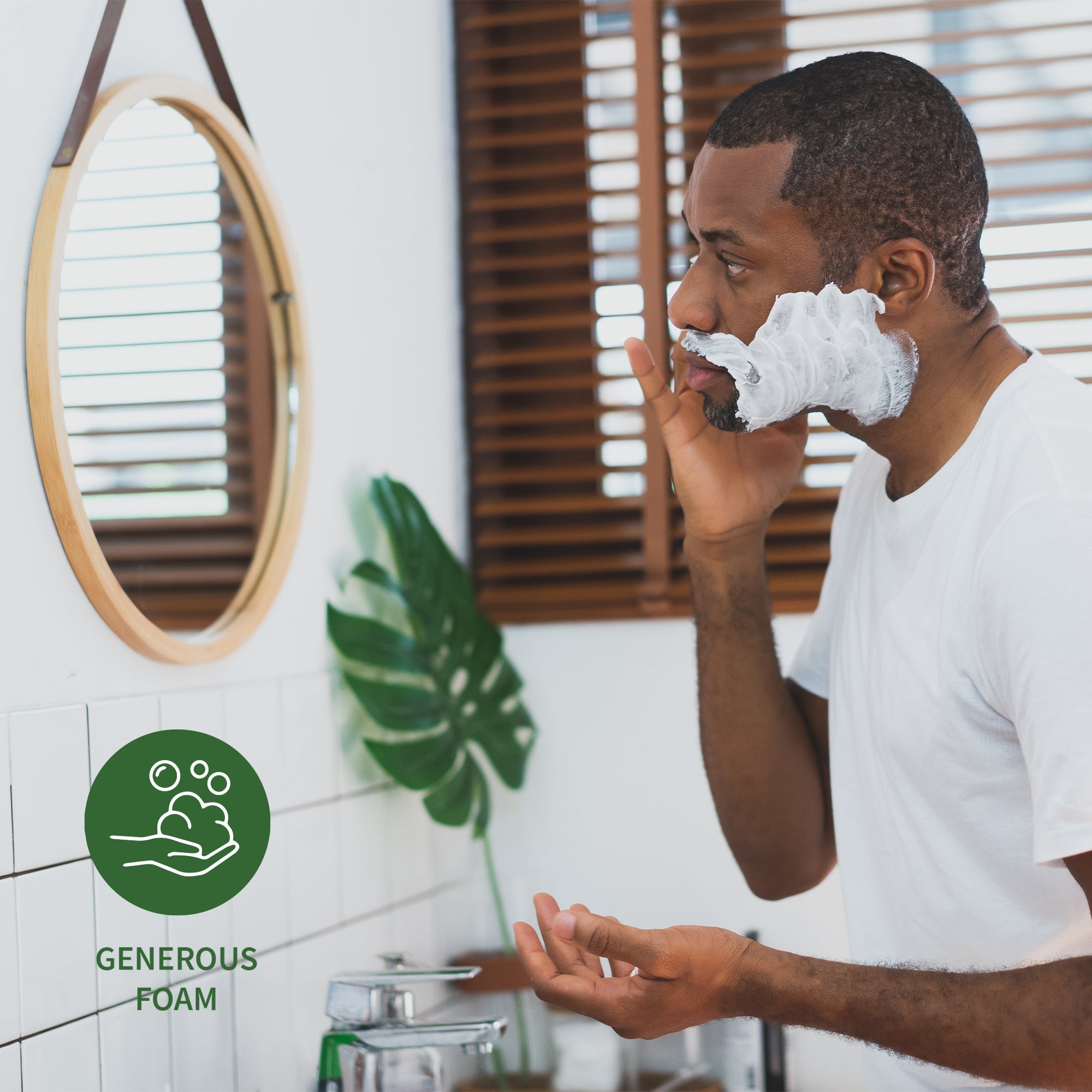 - Skummende og fuktgivende: Gir et rikt skum som beskytter huden