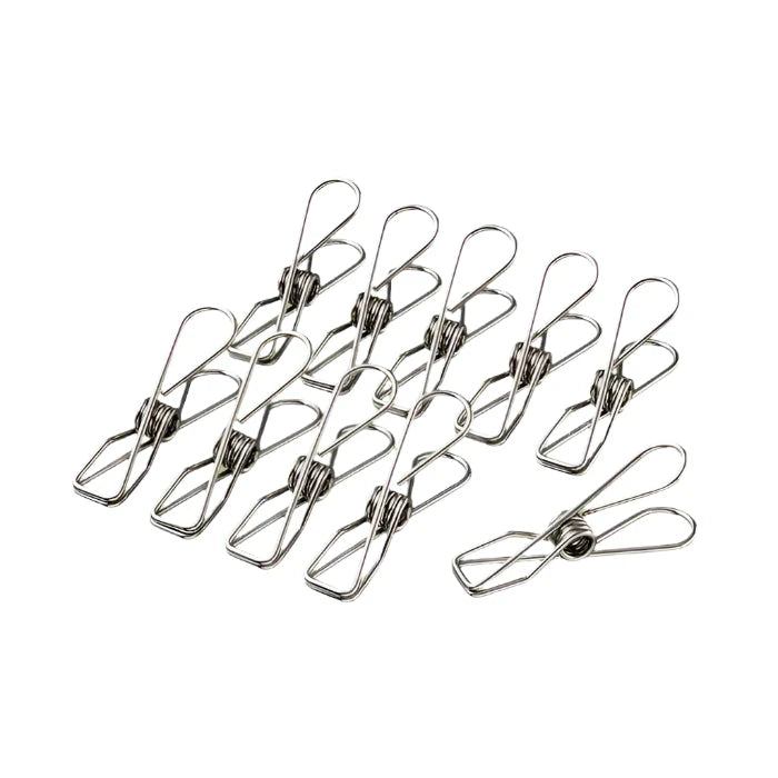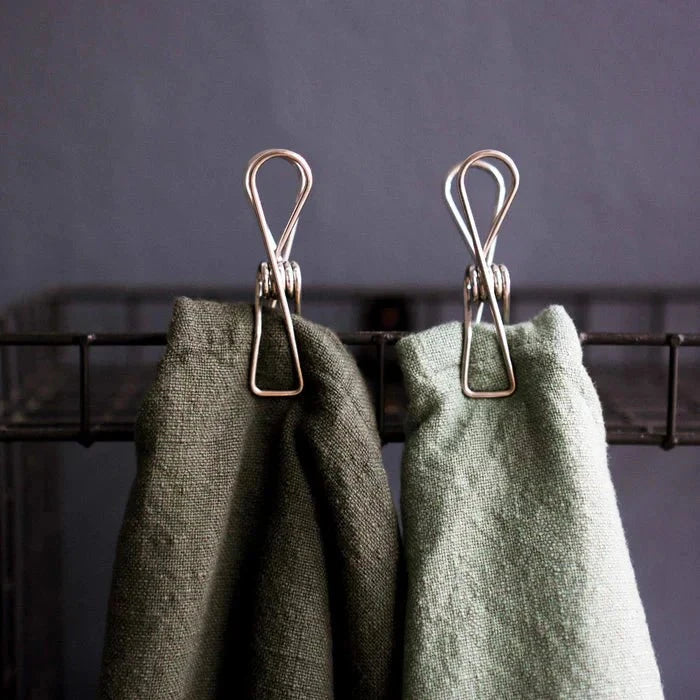 Pulito sine klesklyper i rustfritt stål er et solid og holdbart alternativ til veskeklemmer og klesklyper i plast.
