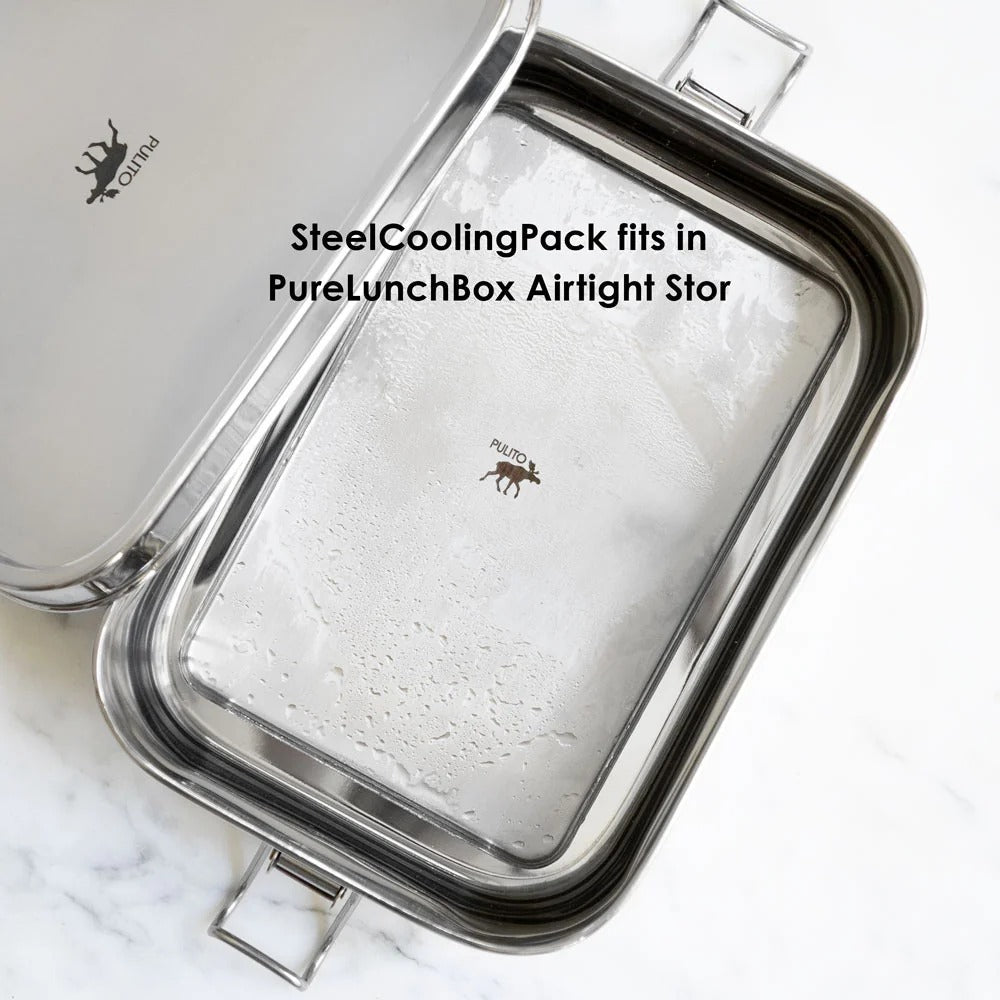 Legg til SteelCoolingPack kjøleelement – passer til Pulito Airtight Lunch Box (1400 ml). Frys over natten og legg i boksen for avkjølt mat gjennom dagen.