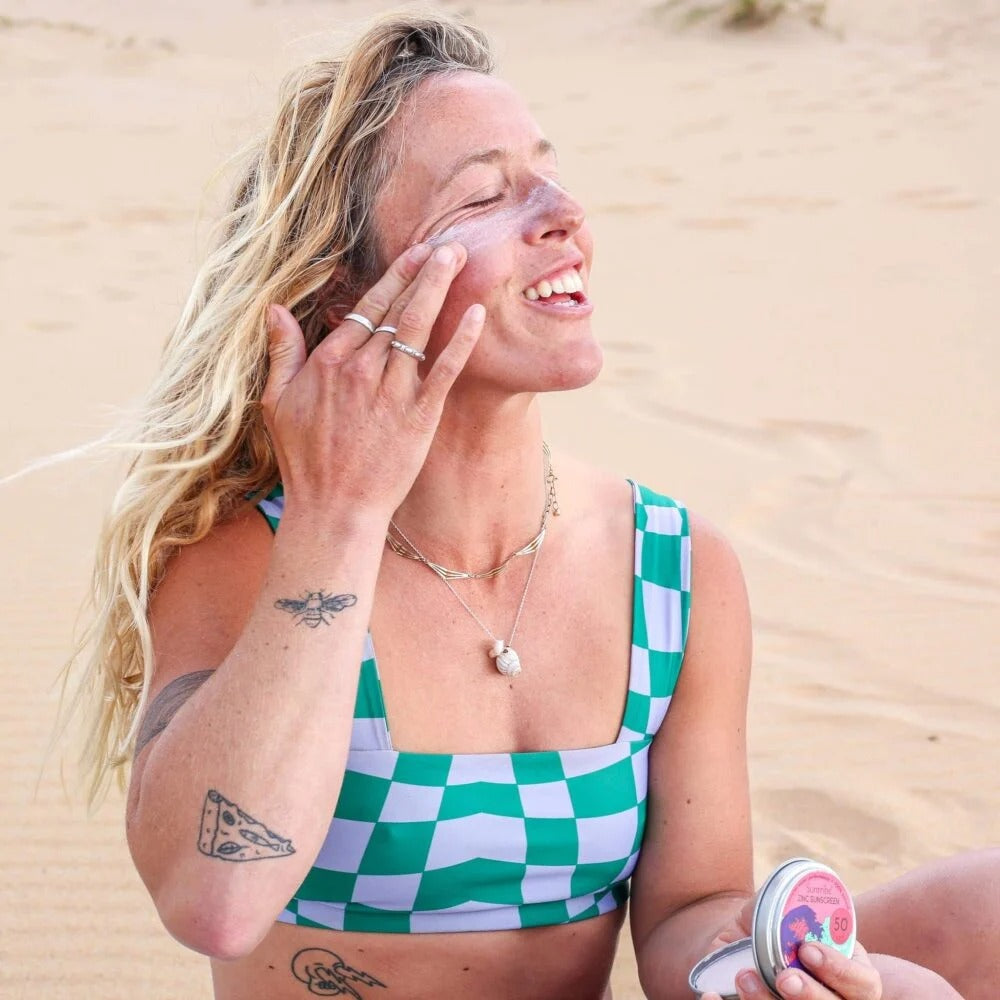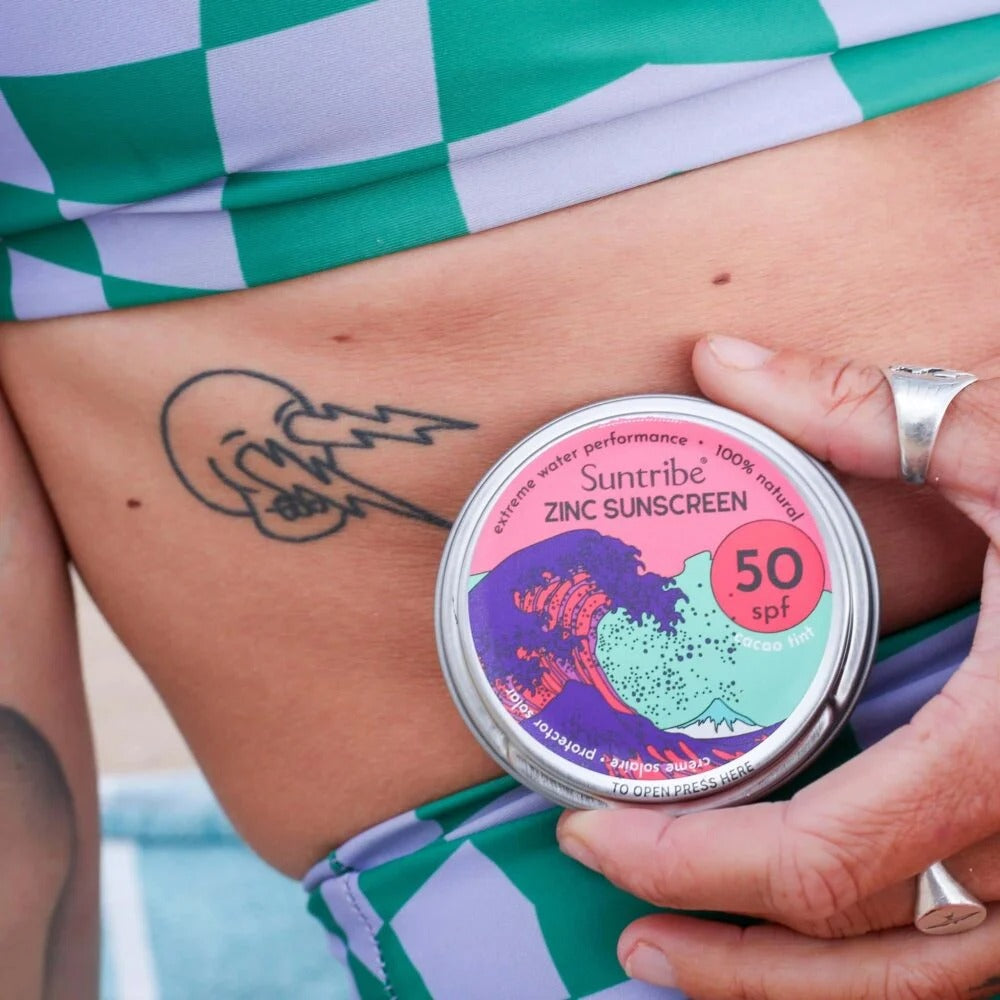 Suntribe Zinc Sunscreen Ltd. Edition SPF 50 – Cacao Tint er en 100 % naturlig og økologisk solkrem utviklet for sport og friluftsliv. Den beskytter huden effektivt med ikke-nano sinkoksid, og er trygg for både mennesker og havmiljøet.
