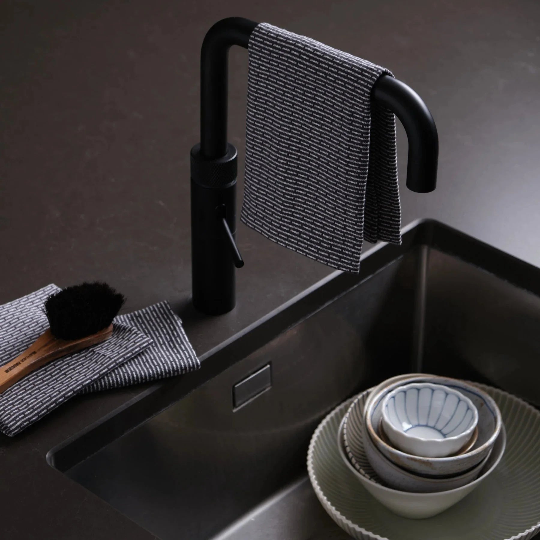 Kjøkkenkluten er vevd i en egen piqué-struktur utviklet av vevdesigneren Laura Ruscillo. Den minimalistiske utformingen gjør at den passer inn i både moderne og klassiske kjøkken.