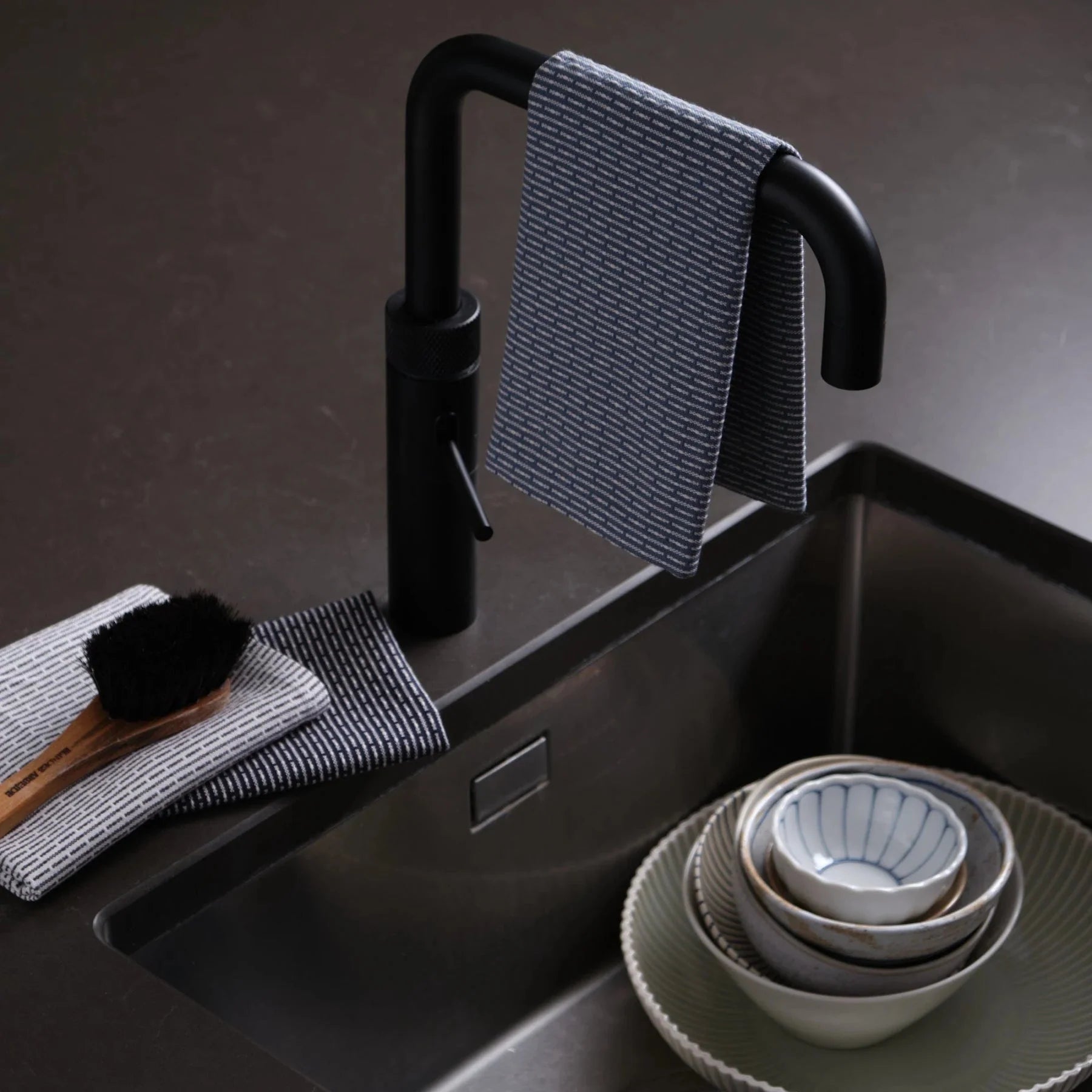 Kjøkkenhåndklærne er tilgjengelige i en rekke gjennomtenkte og harmoniske farger som gjør det enkelt å matche med kjøkkenets øvrige tekstiler. Den minimalistiske stilen passer både moderne og klassiske interiør, og den integrerte hempen gjør dem enkle å henge opp.