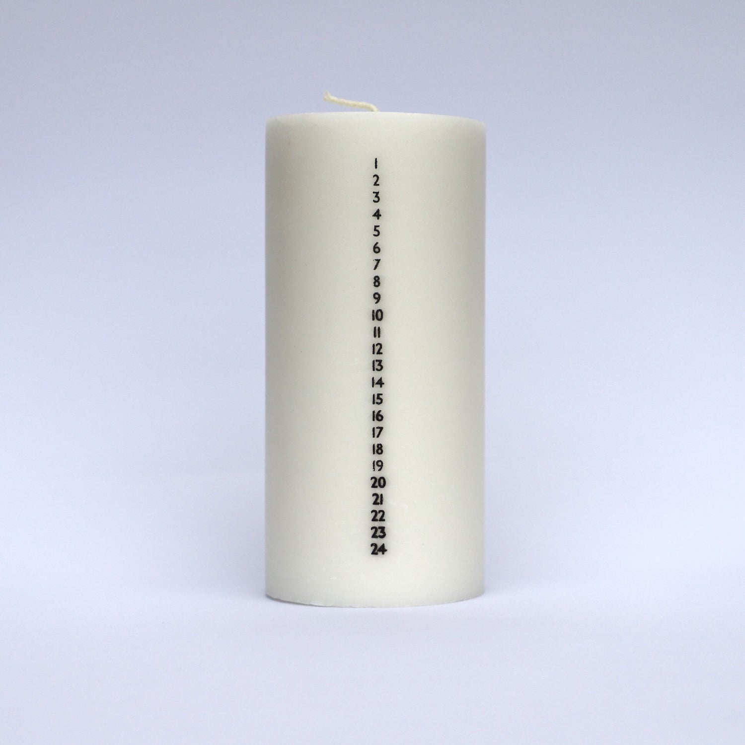 Åbenlys Kalenderlys med sorte tall er et naturlig og stemningsfullt kubbelys laget av soyavoks og stearin – fri for parfyme og kjemikalier. Perfekt til en ren og koselig adventstid.