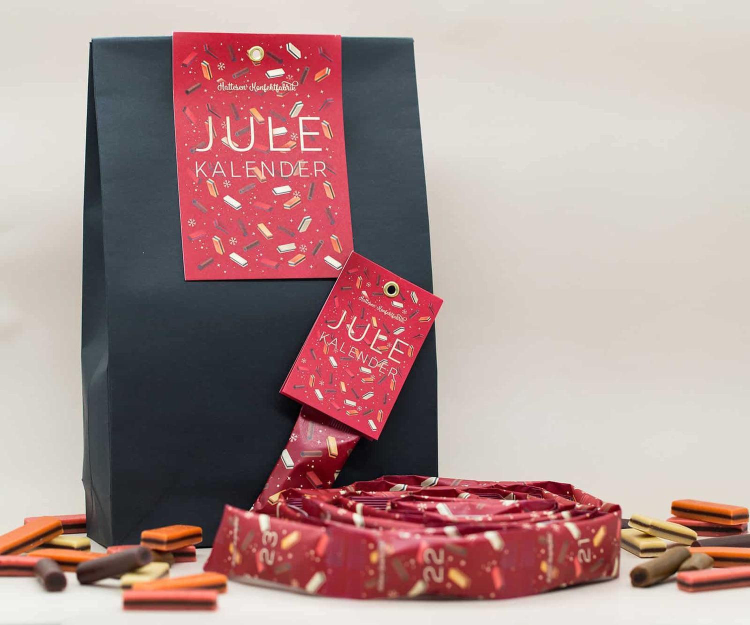 Bak Hattesens Julekalender står det anerkjente konfektverkstedet fra Ærø – kjent for sitt genuine håndverk og kjærlighet til naturlige smaker. Kalenderen er pakket i elegant, rødt papir og måler hele 2,5 meter. Hver dag klipper du deg en bit nærmere jul – en tradisjon som forener smak, estetikk og forventning.